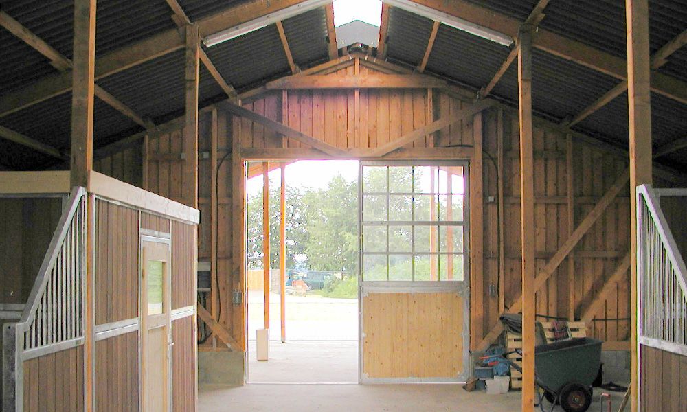 Beim Typ PST verlaufen Stützen entlang des Mittelgangs. Daran können die Boxenwände befestigt werden, sodass eine klare Struktur entsteht.