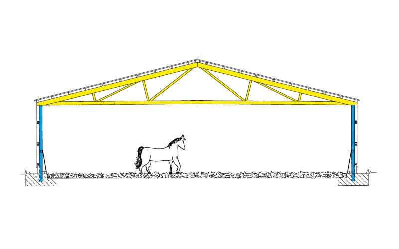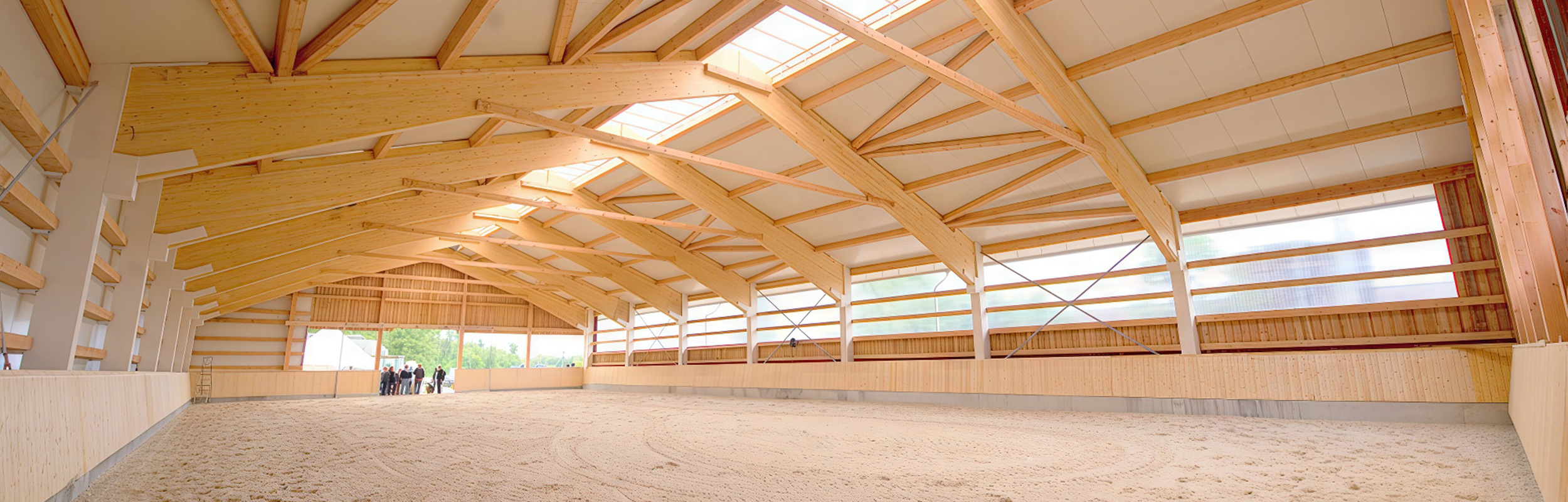 Reithallen sind auf das standardisierte Hufschlagmaß von 20 × 40 m ausgelegt. Zur Auswahl stehen Raster mit 8 Feldern à 5,125 m oder 6,25 m. Bei der größeren Ausführung entsteht zusätzlich Platz für einen Besuchergang.