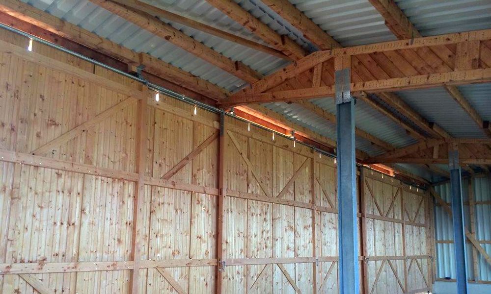 Neben verschiedenen Toranlagen (Schiebe- oder Sektionaltore) können Maschinenschuppen mit Kraggiebeln, Sockelerhöhungen oder geschlossenen Rückwänden ausgeführt werden. Auch Varianten mit integrierter Werkstatt oder als Schüttguthalle sind realisierbar.