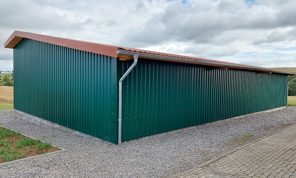 Der MS 2 ist unser meistgebauter Maschinenschuppen und überzeugt seit Jahrzehnten durch seine robuste Bauweise und seine Vielseitigkeit. Mit seiner offenen oder geschlossenen Konstruktion eignet er sich für nahezu jede Maschinen- und Geräteunterbringung .