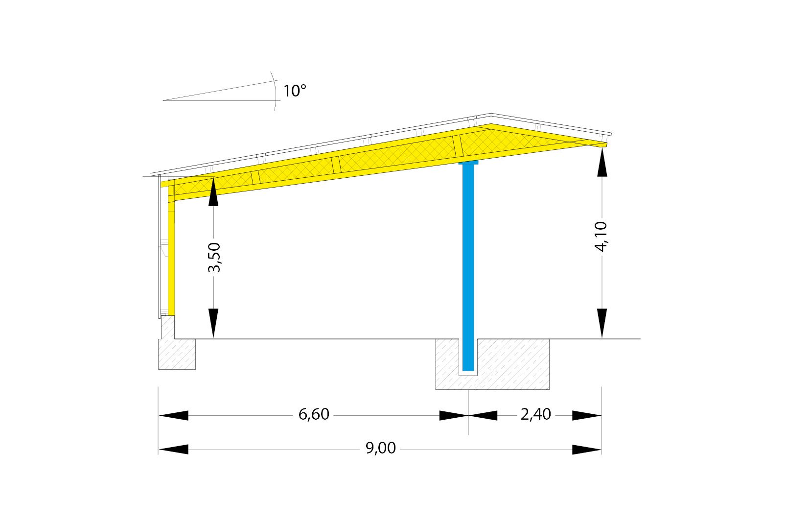 Maschinenschuppen sind mit Dachneigungen zwischen 10° und 25° realisierbar. Auch Varianten mit steiler Dachform (z. B. Typ MB mit 25°) zur Anpassung an Ortslagen oder Bebauungspläne sind verfügbar. So kann der Schuppen sowohl funktional als auch baurechtlich optimal ausgelegt werden.