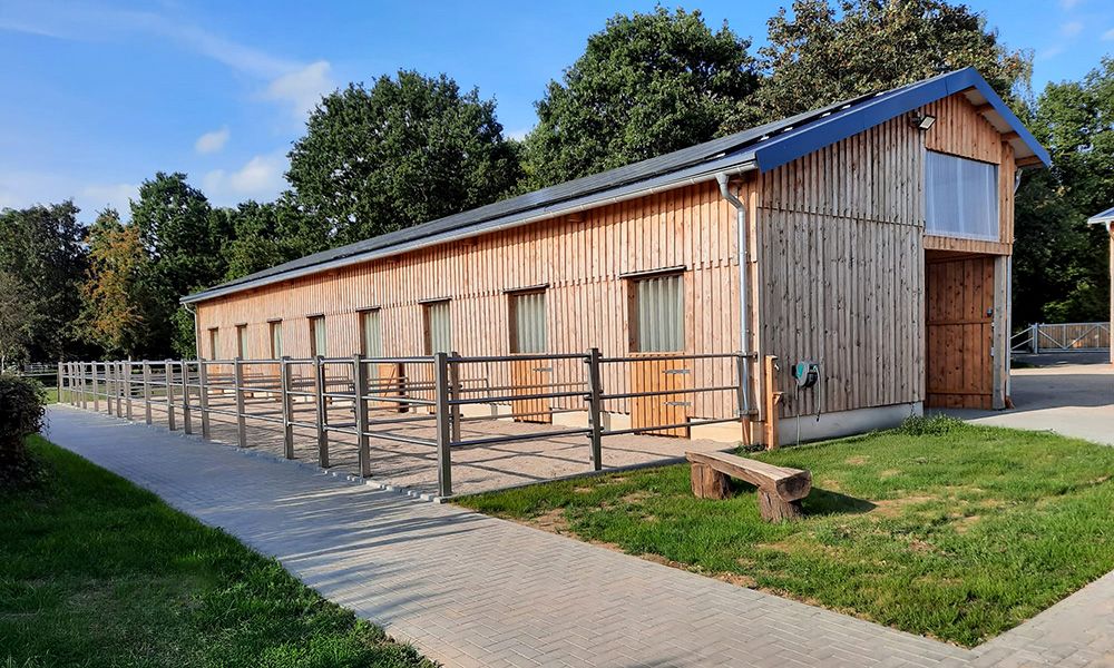 Die Ställe sind auf unterschiedliche Konzepte ausgelegt: von klassischen Einzel- und Gruppenboxen über Paddocklösungen bis zu Offenställen oder Weideschutzhütten. Damit ist sowohl eine artgerechte Haltung von Ponys als auch von Großpferden möglich.