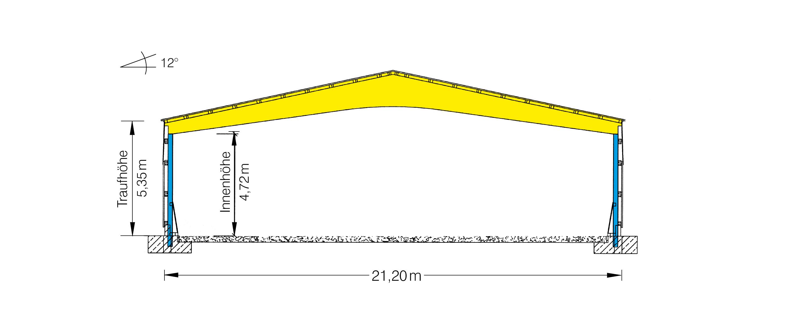 Leimbinder aus Brettschichtholz, feuerverzinkte Stahlstützen