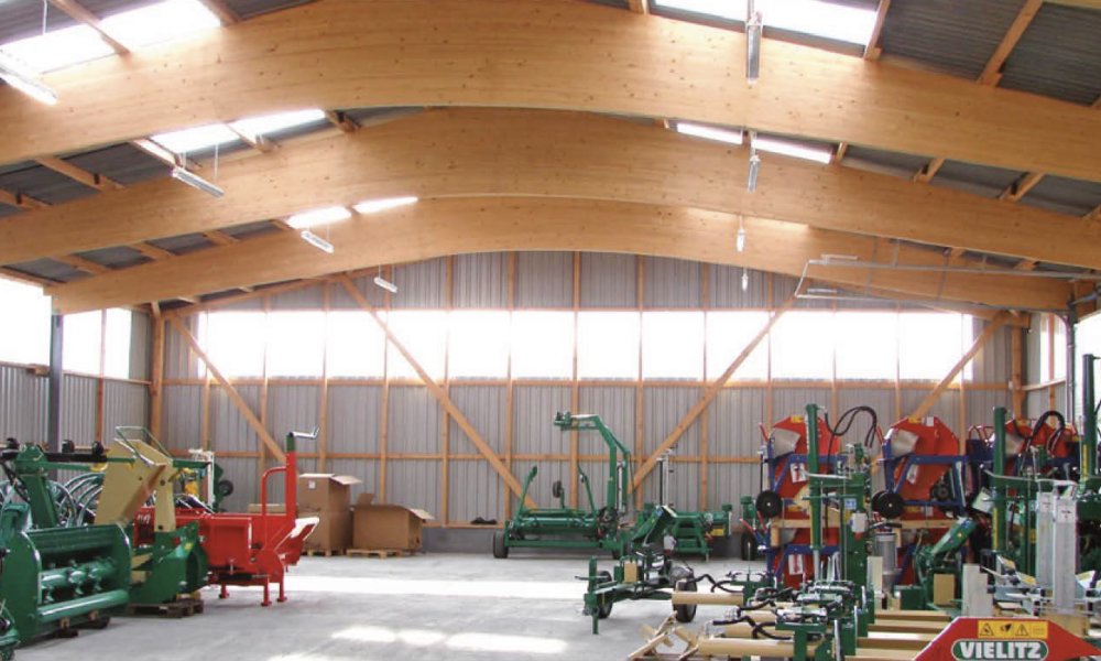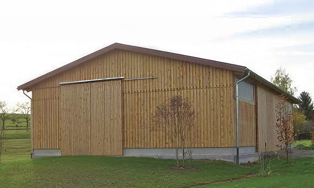 Ob Lagerhalle, Verkaufsfläche, Stall oder Futterlager – die Vielzweckhalle Typ LB bietet maximale Flexibilität. Durch die offene Bauweise mit großem Firstbereich lassen sich auch individuelle Anforderungen wie Kragdächer oder zusätzliche Lichtbänder problemlos umsetzen.