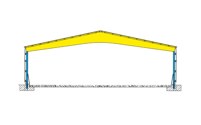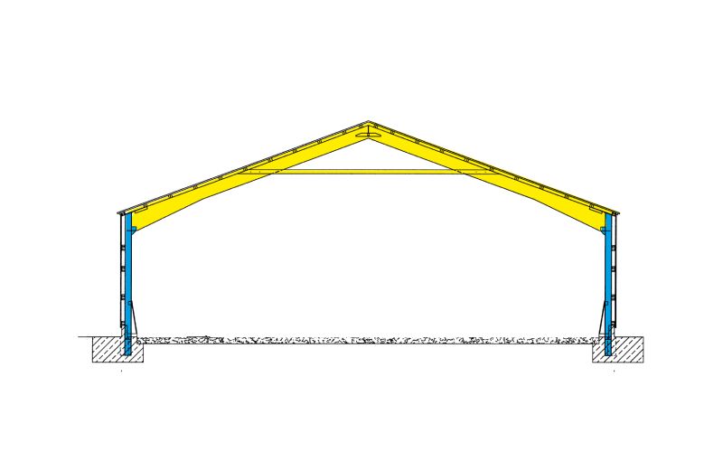 Es gibt drei Tragwerksarten: Fachwerkbinder (FB) als preisoptimierte Lösung, Leimbinder (LB) für größere Spannweiten und Rahmenbinder (RBs) mit freier Dachneigung und viel Raumhöhe. Jede Variante ist robust und langlebig gebaut.