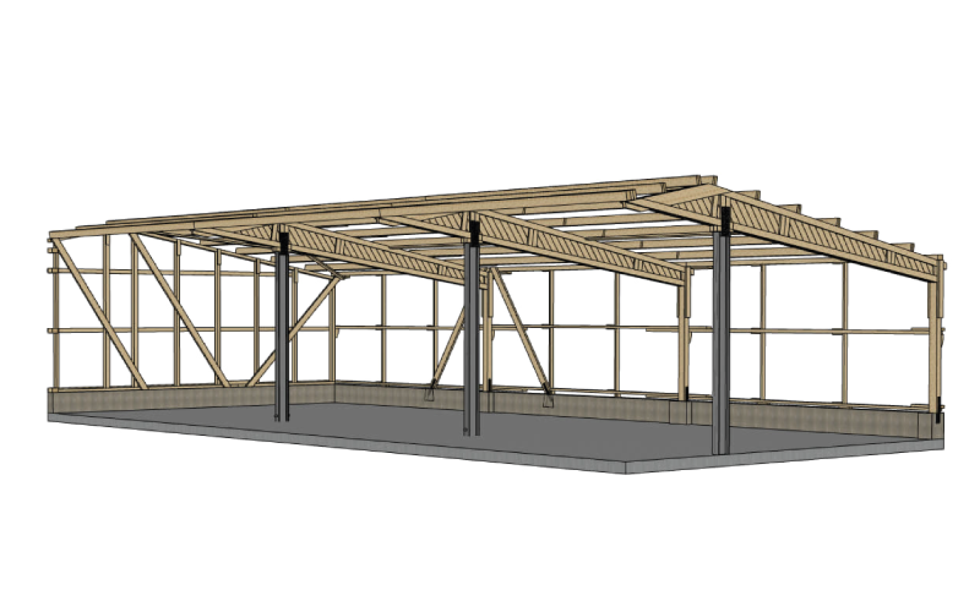 Maschinenschuppen sind mit Dachneigungen zwischen 10° und 25° realisierbar. Auch Varianten mit steiler Dachform (z. B. Typ MB mit 25°) zur Anpassung an Ortslagen oder Bebauungspläne sind verfügbar. So kann der Schuppen sowohl funktional als auch baurechtlich optimal ausgelegt werden.