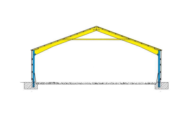 Es gibt drei Tragwerksarten: Fachwerkbinder (FB) als preisoptimierte Lösung, Leimbinder (LB) für größere Spannweiten und Rahmenbinder (RBs) mit freier Dachneigung und viel Raumhöhe. Jede Variante ist robust und langlebig gebaut.