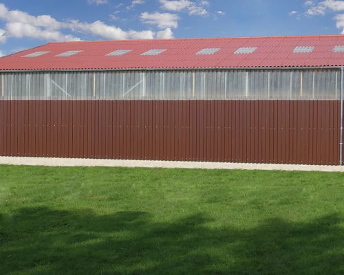 Unsere Hallen können mit hochwertigem Trapezblech eingedeckt werden, das in verschiedenen Farben gemäß Farbkarte wählbar ist. Auf Wunsch kann das Trapezblech mit einer speziellen Antikondensatbeschichtung (Vlies) versehen werden, die direkt auf der Innenseite aufgebracht ist und der Bildung von Kondenswasser bei Temperatur- und Luftfeuchtigkeitsschwankungen entgegenwirkt. Die Elemente haben eine Deckbreite von 100 cm und das bewährte Profil 35/207. Sie können wählen, ob Sie die Dacheindeckung mit oder ohne diese zusätzliche Beschichtung wünschen.