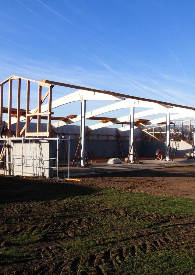 Die Fertigung Ihrer Halle erfolgt in unserem eigenen Werk in der Eifel. Durch die Kombination von hochwertigem Material, eigenem Sägewerk, Zimmerei und Schlosserei sowie modernster Technik gewährleisten wir Präzision und Qualität. Jeder Produktionsschritt unterliegt strengen Kontrollen und wird von erfahrenen Fachleuten begleitet.